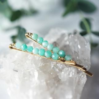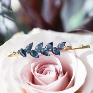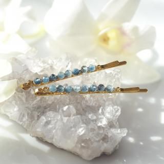 希少な深い青のアクアマリンにてジュエル・ヘアピンを作製しました。