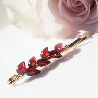 縁起のよいミズヒキの花の形にお仕立てした、 ガーネットのジュエル・ヘアピン。