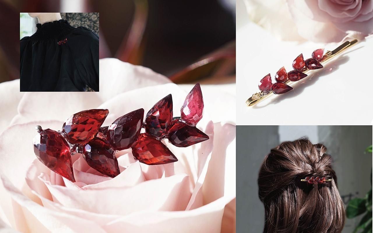 真珠とスピネルのジュエル・ヘアクリップ/バレッタ 〜百花繚乱