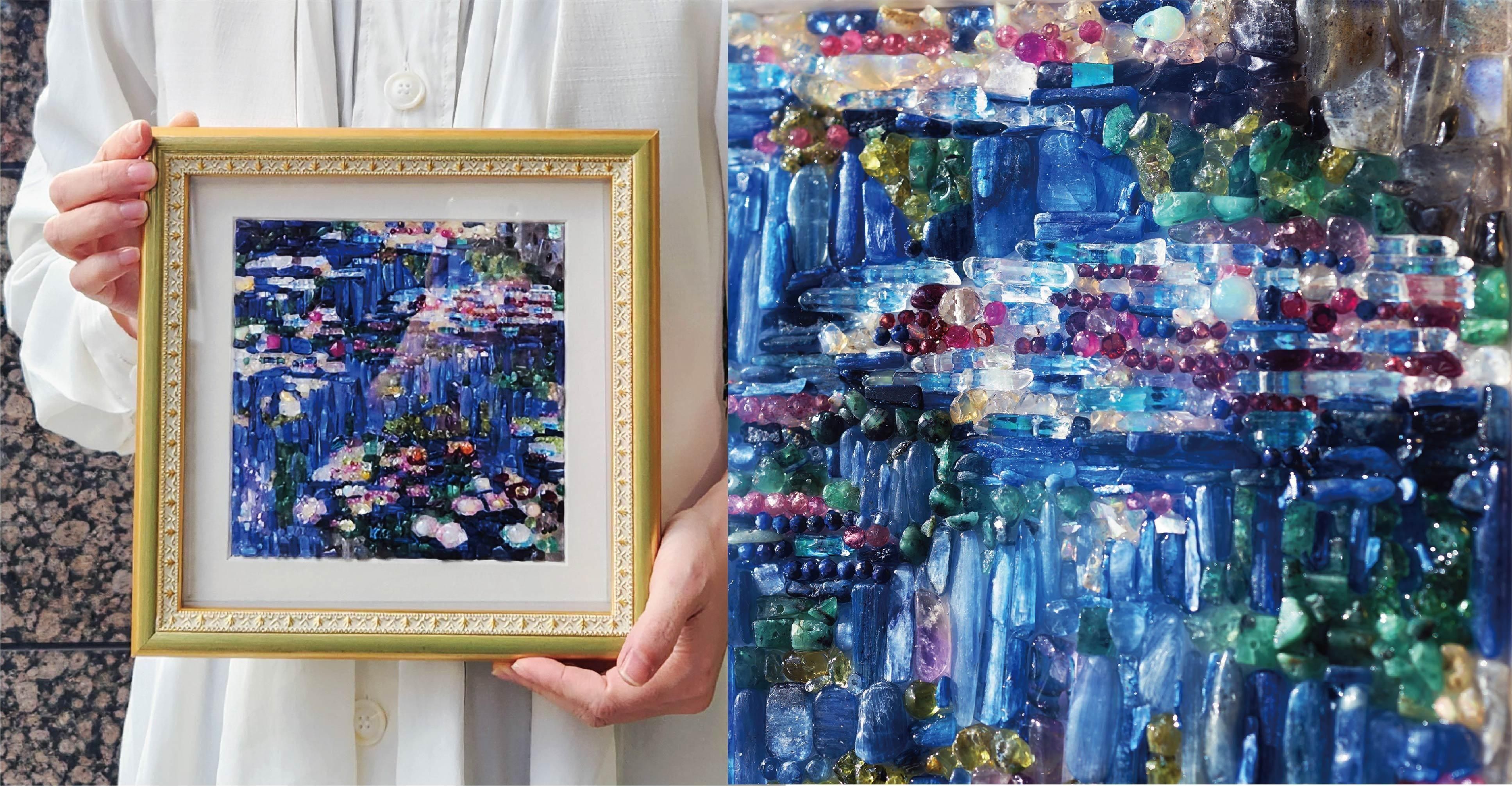 宝石を敷き詰めてクロード・モネの≪睡蓮≫を点描しました。