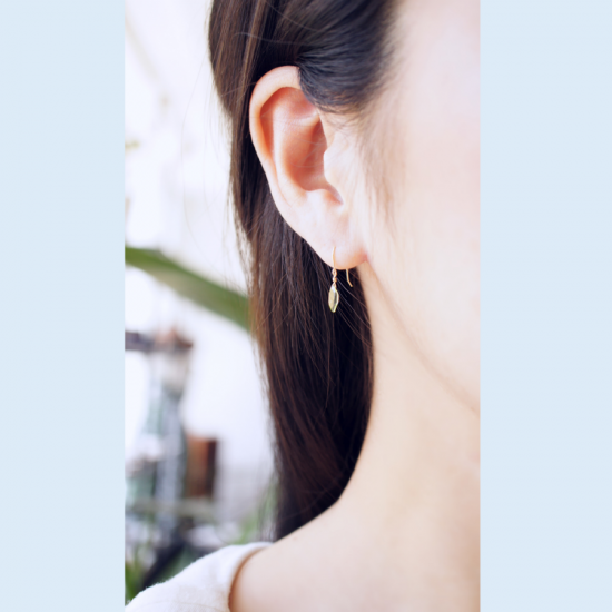 チャームのストーン部分が外せる2Wayのピアス。ホワイトでまとめられて清潔感のあるコーディネートです。