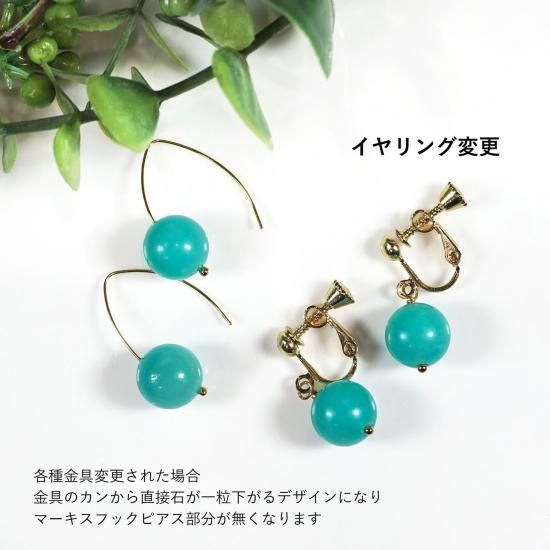 ※各種金具変更された場合、金具のカンから直接石が一粒下がるデザインになり、マーキスフック部分が無くなります。ご了承のうえ、ご選択くださいませ。