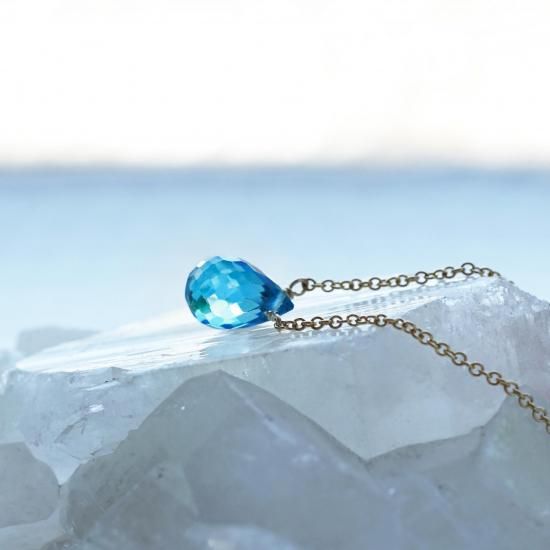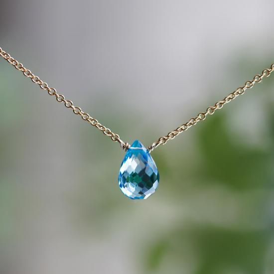 高品質スイスブルートパーズのブリオレットドロップカットネックレス 〜Severine