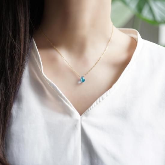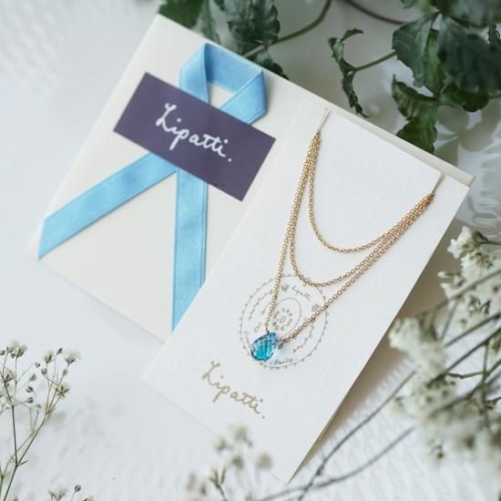 寒色系が好きで、派手になりすぎないスイスブルートパーズは普段使いにもぴったりでした。長く使っていきたいなと思ったので10Kに変更しましたが、上品なチェーンで大正解でした!