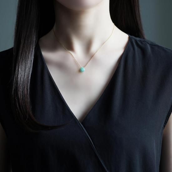 ヘアゴムを購入してアマゾナイトに魅了され、ネックレスも購入させていただきました。色がしっかりしているのでターコイズみたいにマットな感じかと思いきや、水の隙間を通ってくる光のような、奥に手を伸ばしたくなる不思議な透明感があるのがたまりません。個人的にはターコイズより自分の肌の色にも合っていて、素敵な石に出会わせてもらえてとっても嬉しいです!ヘアゴムと合わせて使って楽しんでいます。