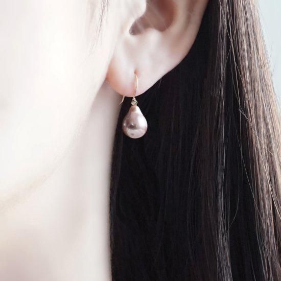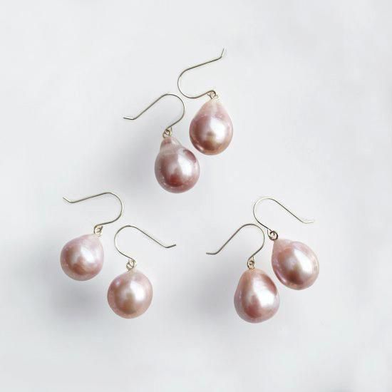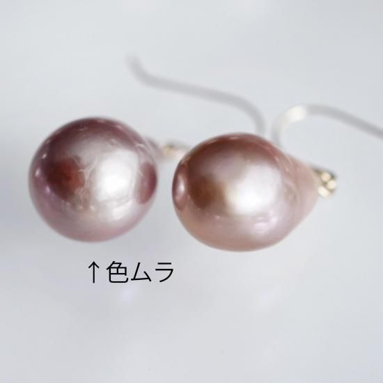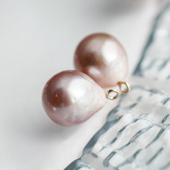 これからの季節に映える、大粒の天然色淡水真珠を使用したピアス。