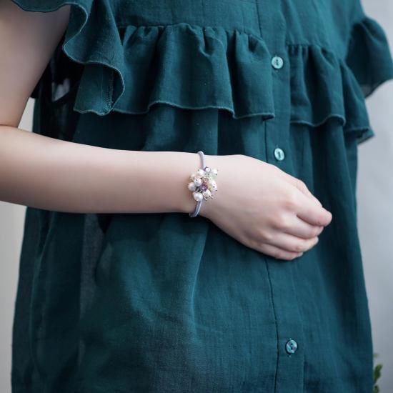 春夏っぽい色合いのイメージですが、パールがたくさん使われているおかげで、季節を問わず着けられると思います。
