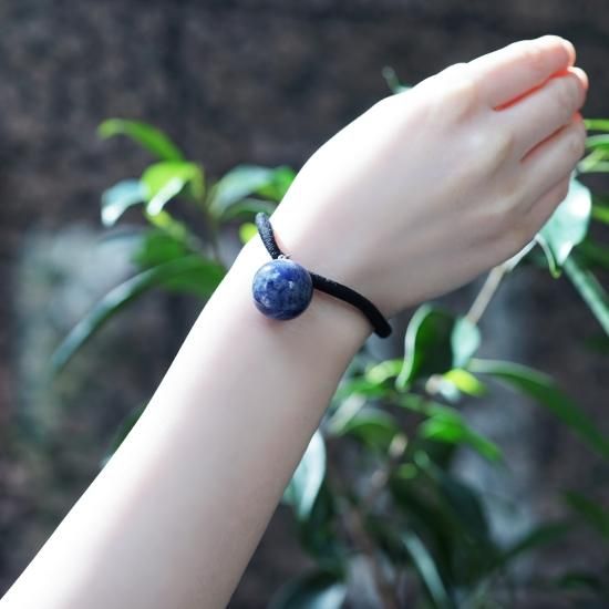 ころんと可愛い、ソーダライトによる一粒ヘアゴム。