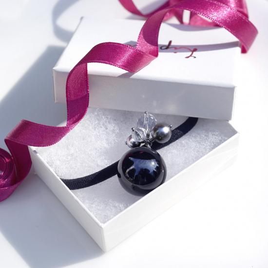 黒色石なのに、ツヤツヤした丸い形とパールや水晶も付いている為か華やかでカワイイです。