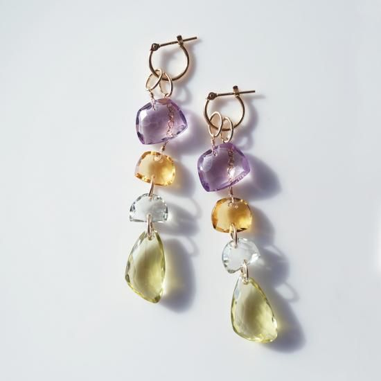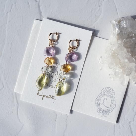 アメジスト、レモンクォーツ、シトリン、グリーンアメジストの組み合わせ。