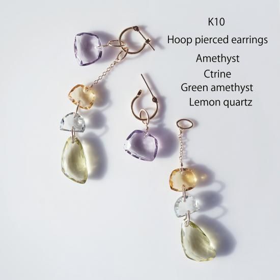☆K10製・4種天然石による付替え3WAYフープピアス 〜初虹(はつにじ)