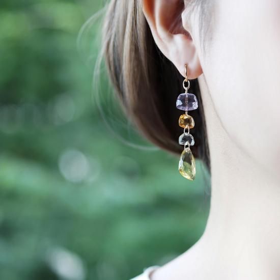 ゴールド 天然石 ジュエリー アクセサリー カラーストーン ストーン ハンドメイド プレゼント ギフト シンプル モード デザイン ディナー ランチ 春 コーディネート 穏やかな色 大人のジュエリー
