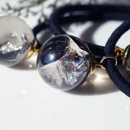 光を返す白い石と黒い影、優雅な装飾と合理的な構造、壮麗な作りと光・風を纏わせるピアス。
