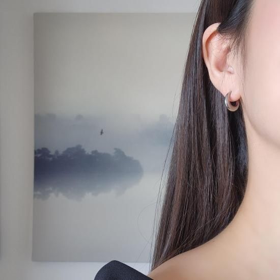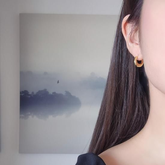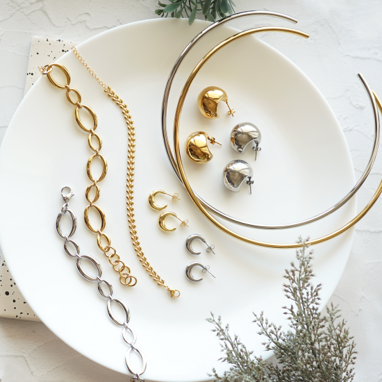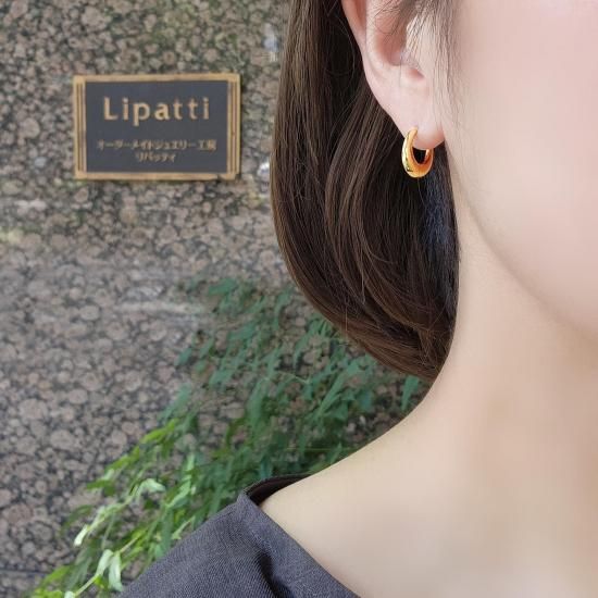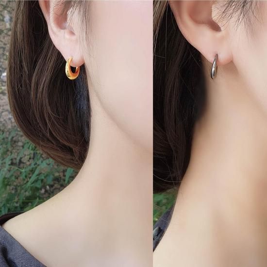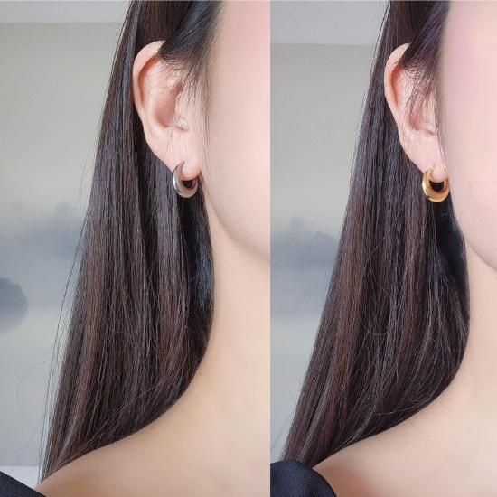 美しい煌きの3つのチャームが付け替えできる、アレルギー対策のサージカルステンレス・フープピアス。