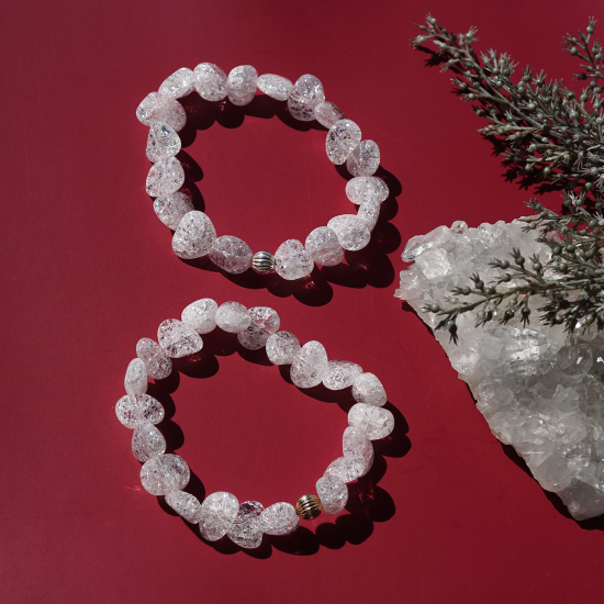 水晶を加熱して冷やすことで、美しいクラックを走らせる爆裂(ばくれつ)水晶。