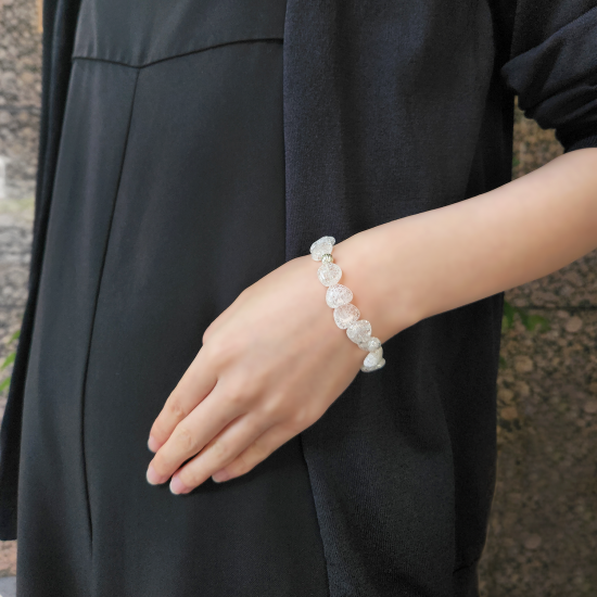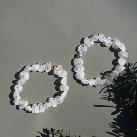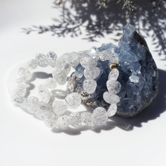 虹に煌めく★爆裂水晶のコルゲートブレスレット 〜銀花(ぎんか)