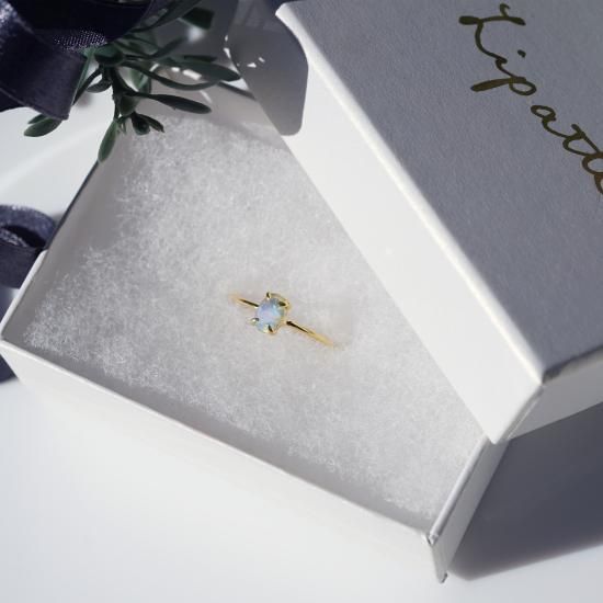 暁の月に見立てたボールのピアス。