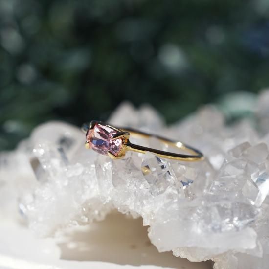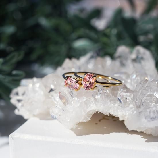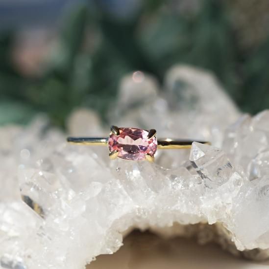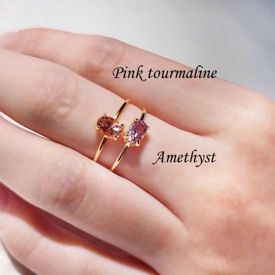 ピンクトルマリン6mmのオーバルファセット爪留めリング・縦横可 〜蓮の花