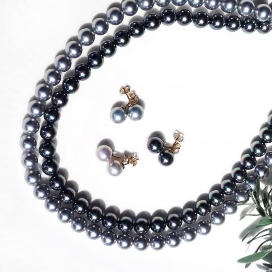 こちらはタヒチ産の黒真珠のような色を再現すべく、本物の真珠の粉から何度もコーティング及び研磨して仕上げた高級素材です。