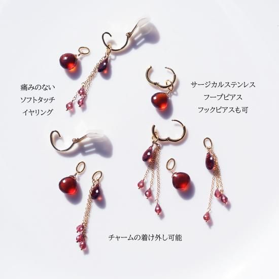 サージカルステンレス・フックピアスにも変更可能です(チャーム一体化のため取り外し不可となります)
