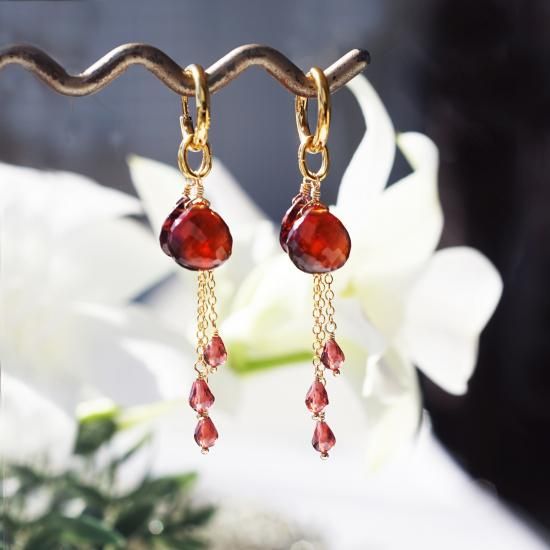 ガーネット ゴールド 天然石 ジュエリー アクセサリー カラーストーン ストーン ハンドメイド プレゼント ギフト サージカルステンレス ピアス イヤリング