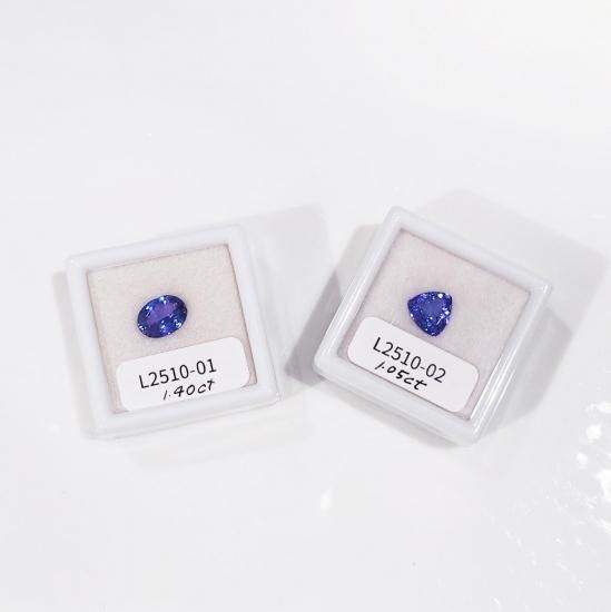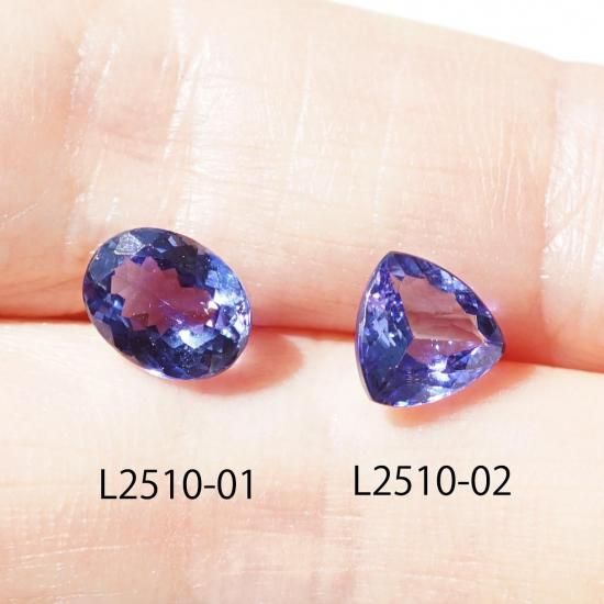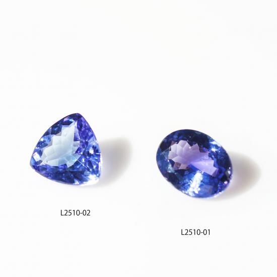 「タンザニアの石」を意味するタンザナイトは、その名が示すとおり、キリマンジャロの夕暮れ時の空を映し出したような美しい青紫色をしています。多色性という特徴を持っており、見る角度によって青色や紫色が強くなる宝石です。こちらの石でも、同時に青と紫が同時に見られます。自然光の下では透明感に満ちた美しい群青色に、夜のライトや白熱灯の下では高貴な紫色に、蛍光灯の下では青色に輝く変化も見られます。