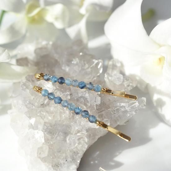 ディープブルーアクアマリン連なるジュエルヘアピン 〜Lidia