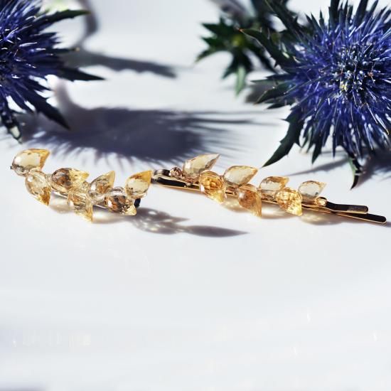 麦の穂をイメージしてお仕立てしたシトリンによるヘアピン。