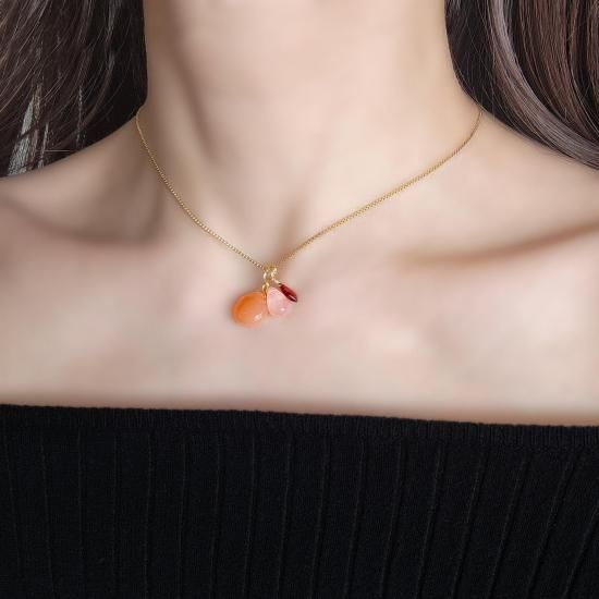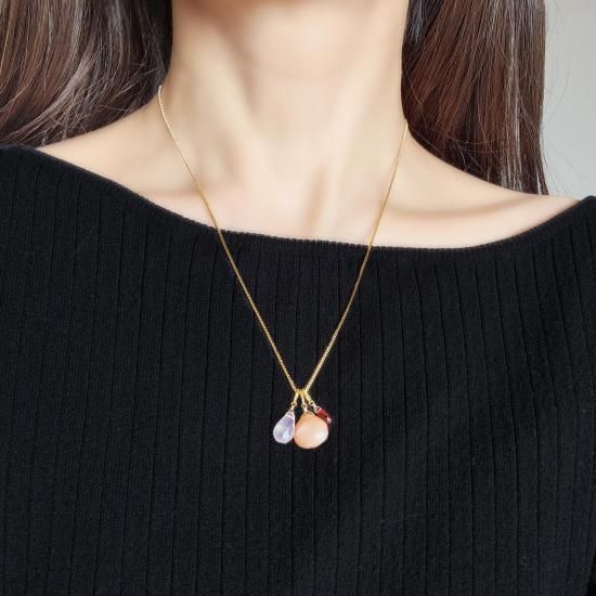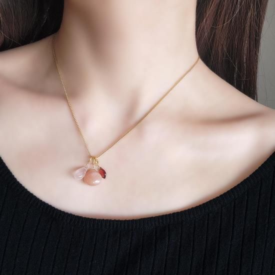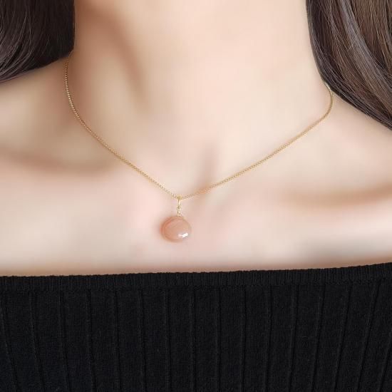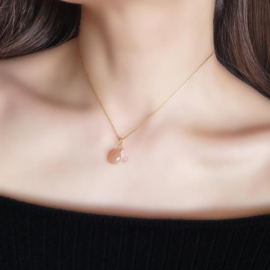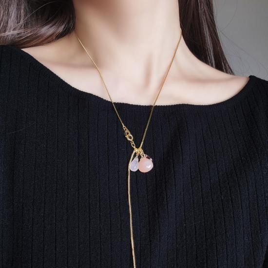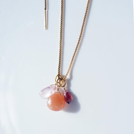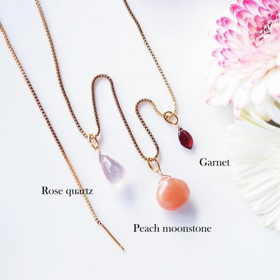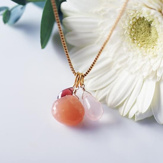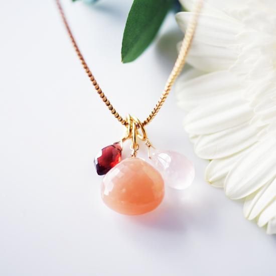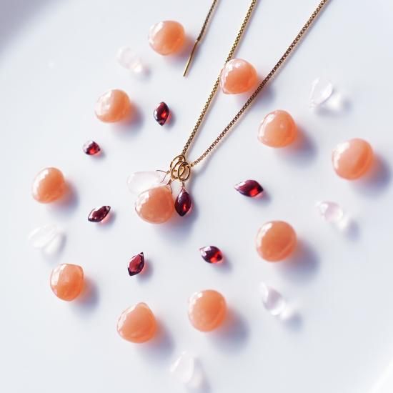 極上ピーチムーンストーンよる桃の花のネックレス・サージカルステンレス・スライドチェーン 〜桃の花
