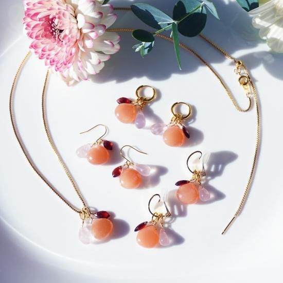 桃の花のデザインに仕立てられた3種のジュエルです。