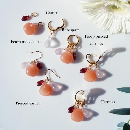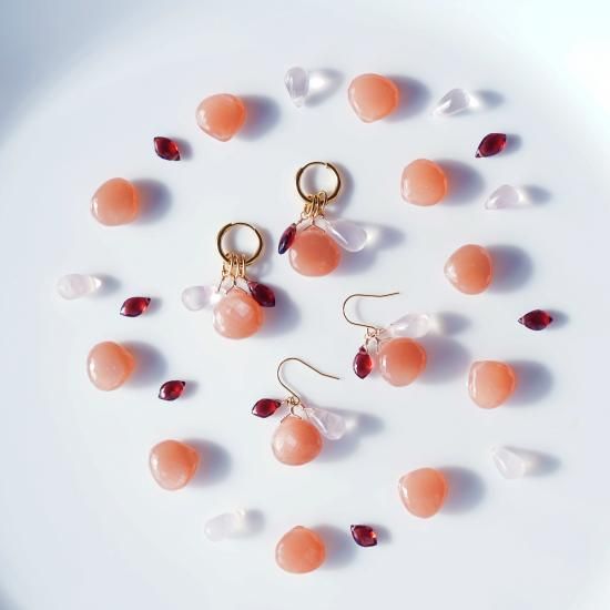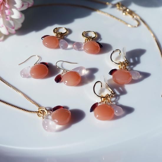 桃の花のデザインに仕立てられた3種のジュエルです。